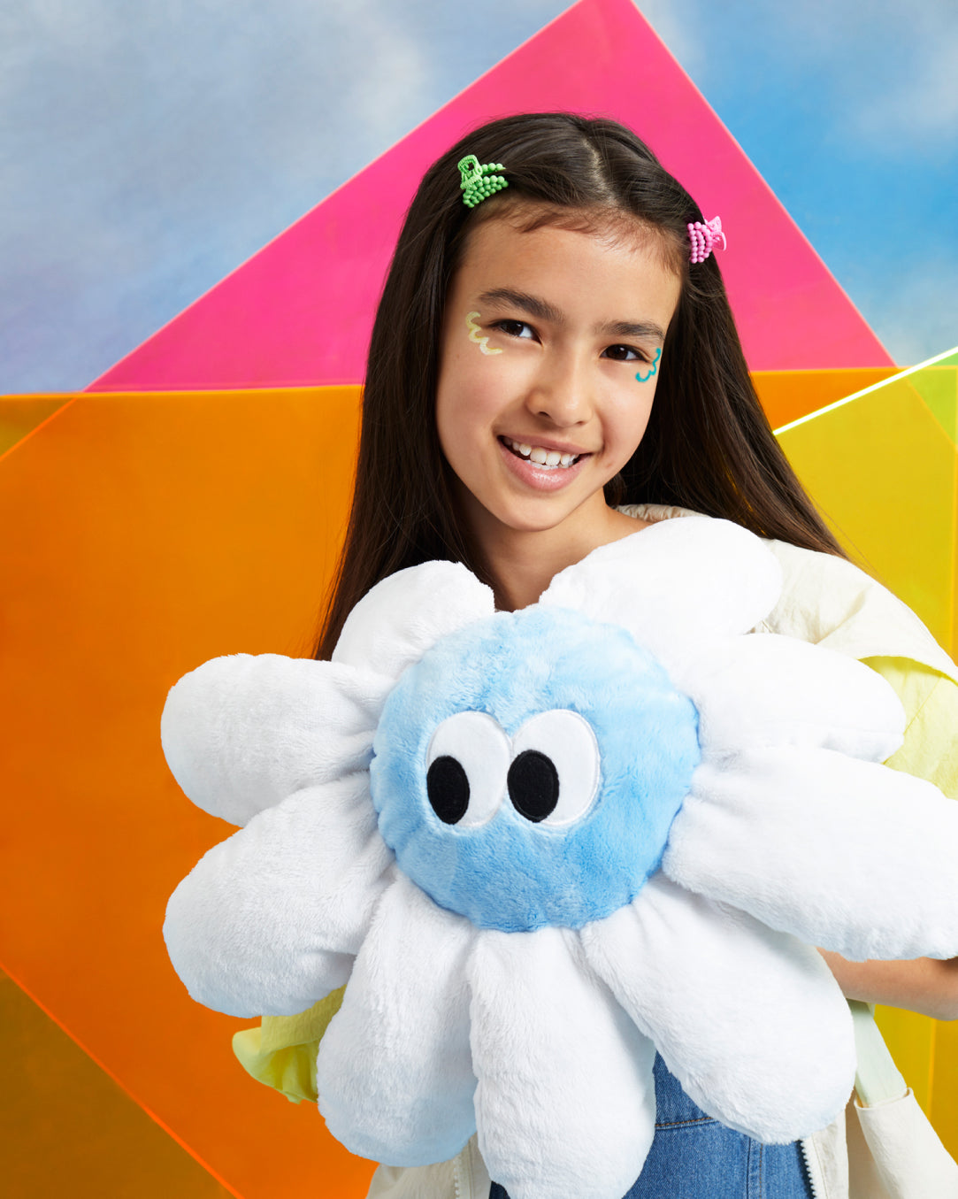 A super-soft, fluffy, cuddly flower shaped cushion